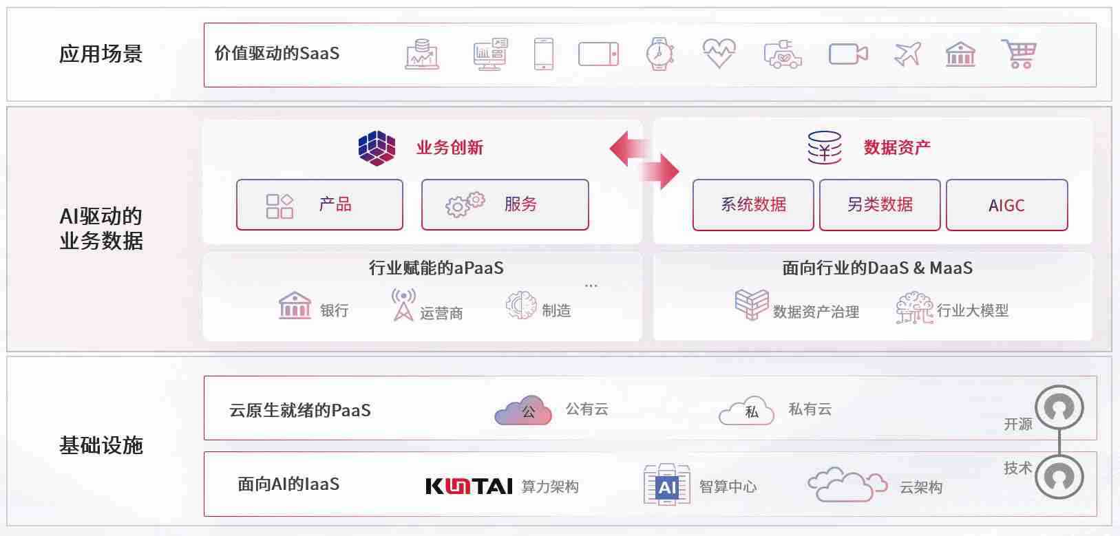 数字时代,,围绕企业数字化转型的关键要素,,,Z6尊龙数码开创性的提出数云融合战略和技术体系框架,,着力在云原生、、、数字原生、、AI原生和信创产业上架构产品和服务能力,,,,为处在不同数字化转型阶段的快消零售、、汽车、、、金融、、、医疗、、、政企、、教育、、、运营商等行业客户提供泛在的敏捷IT能力和融合的数据驱动能力,,,构建跨界融合创新的数字业务场景和新业务模式,,助力企业级客户建立面向未来的核心能力和竞争优势,,,,全面推动社会的数字化、、、、智能化转型升级。。。。